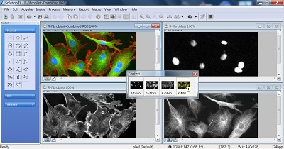 加拿大IMT公司iSolution FL螢光影像強化軟體包含所有iSolution Capture與iSolution Lite功能之外。另外針對螢光顯微鏡影像特性,增加影像套色與合併之功能。