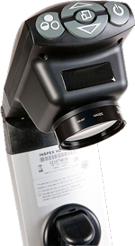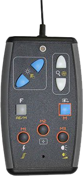 設備上簡單的控制主要功能,如縮放,影像補捉和概述可以從面板上直接控制,螢幕選單也可從此處控制 |