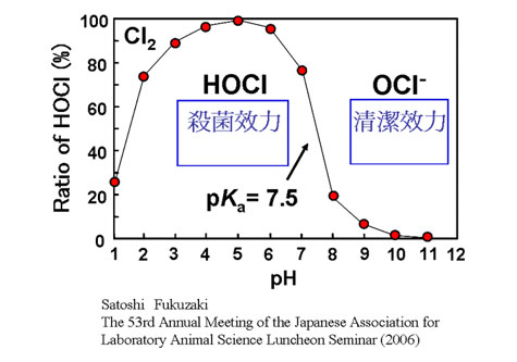 因為液體溶液的pH值的不同, 氯(游離氯)會改變它的形式。由於滅菌液其效力的主要成份是次氯酸(HOCl)。因此, 弱酸性溶液中所含HOCl越高, 殺菌效果就越顯著。HSP「超次亞水」生成裝置, 使用食品添加物級的HSP酸, HSP蘇打加上水, 設定成最有效率的pH值水準, 配合以最低的次氯酸濃度, 可以產生最高的殺菌效力, 卻絕不會造成環境污染或危及人類健康, 這就是被視為日本革命性突破的速效, 安全, 環保滅菌液—「超次亞水」。