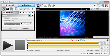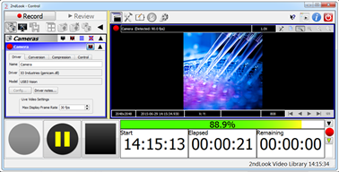 2ndLook is all about ease of use and is the culmination of our 20+ years of experience in developing software and hardware for video recording. A simplified user interface has been fine-tuned and focused on getting the video needed... fast. The new "Record" and "Review" perspectives separate the two main operations showing the right controls when needed. Showing live video instantly is an easy way to see that the system is configured properly. The pronounced recording time and capacity bar give a user the confidence that a long term test can be completed successfully. Connect a camera and then hit Record; it's that easy!