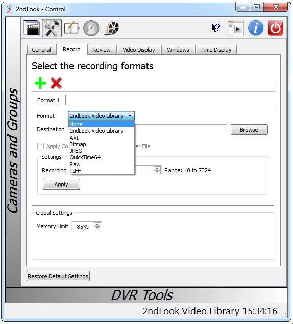 2ndLook has the ability to record directly to many popular file formats. As an example, choosing to record directly to TIFF files will mean that when the recording is finished, the images are immediately available for processing by an image analysis application. 2ndLook can get the video needed, in the format required, quicker and easier than ever!
