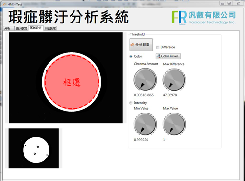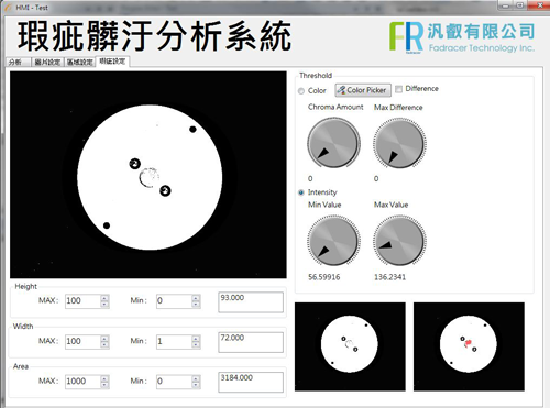 依要判斷的影像範圍,自行框選影像需分析位置,並依照影像顏色或特徵去設定,即使在分析的過程中影像位置改變,也可以正確的找到樣本