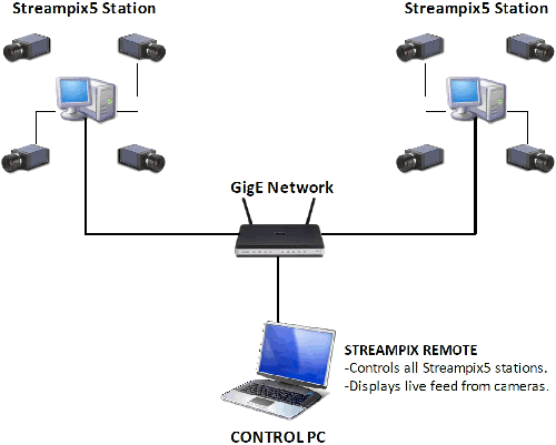 - Any operation such as "start recording" performed on the StreamPix Remote will automatically start recording on each of the 2 copies of StreamPix simultaneously for all 8 cameras.