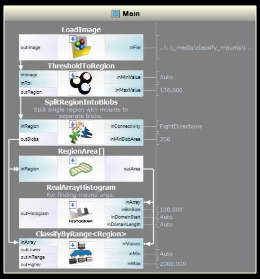 利用 "SplitRegionIntoBlobs" filter 將每個物件分類