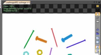 如上,我們可以看到 "RegionCircularity", "RegionDiameter" filter 可以將不同物件分開挑選出釘子,此範例中選擇利用 "RegionDiameter" filter