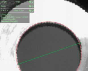 8. 利用 "RegionDiameter" filter 提取斑點將其覆蓋孔內部,找到它的直徑。 利用 "RegionMassCenter" filter 找到孔的中心點