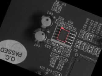 建立一個簡單的公式,檢測在 PCB 上的晶片,檢測過程中,PCB 以不定向的方式呈現在鏡頭前